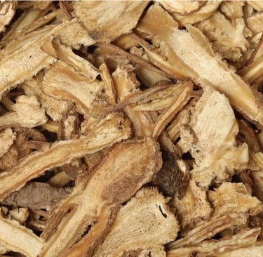 If you've ever smelled this herb, you will always recognize its scent! Angelica Root (Angelica archangelica and Angelica sinensis) has been used for a long time in traditional Chinese medicine (aka TCM, not to be confused with Turner Classic Movies). This particular herb has far-reaching healing properties, in fact, it's actually being studied for its effect on cancer. The medicinal uses of Angelica can be for digestion (increases digestive juices), for respiratory issues (has expectorant properties), for menstrual cramps (specifically the sinensis version), to fight against virus since it has antimicrobial powers, and it can help to increase circulation. This herb does not sit around and just smell strongly, it is very well-rounded.