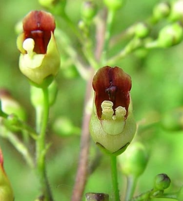 This week's herb is one called Figwort (scrophularia nodosa) and it's sometimes called Knotted Figwort or Woodland Figwort. If you look at the photos above, you can see that its flower does resemble a fig, right? So, what is Figwort and what does it do? Well, read on!
