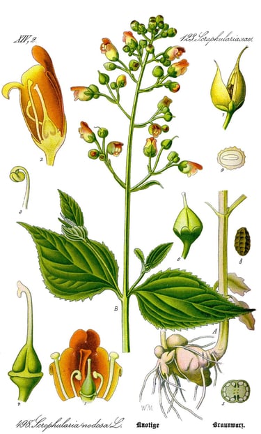 Have you ever heard of the Doctrine of Signatures? This states that things that look like body parts or organs are perfect to bring a healthy balance to those when they need support. The most common example is walnuts which look like brains and are actually healthy for the brain. Historically, Figwort's scientific name is linked to its traditional use in treating scrofula, a form of tuberculosis causing swollen neck lymph nodes based on this doctrine and now we know that it does, indeed, help the lymphatic system.